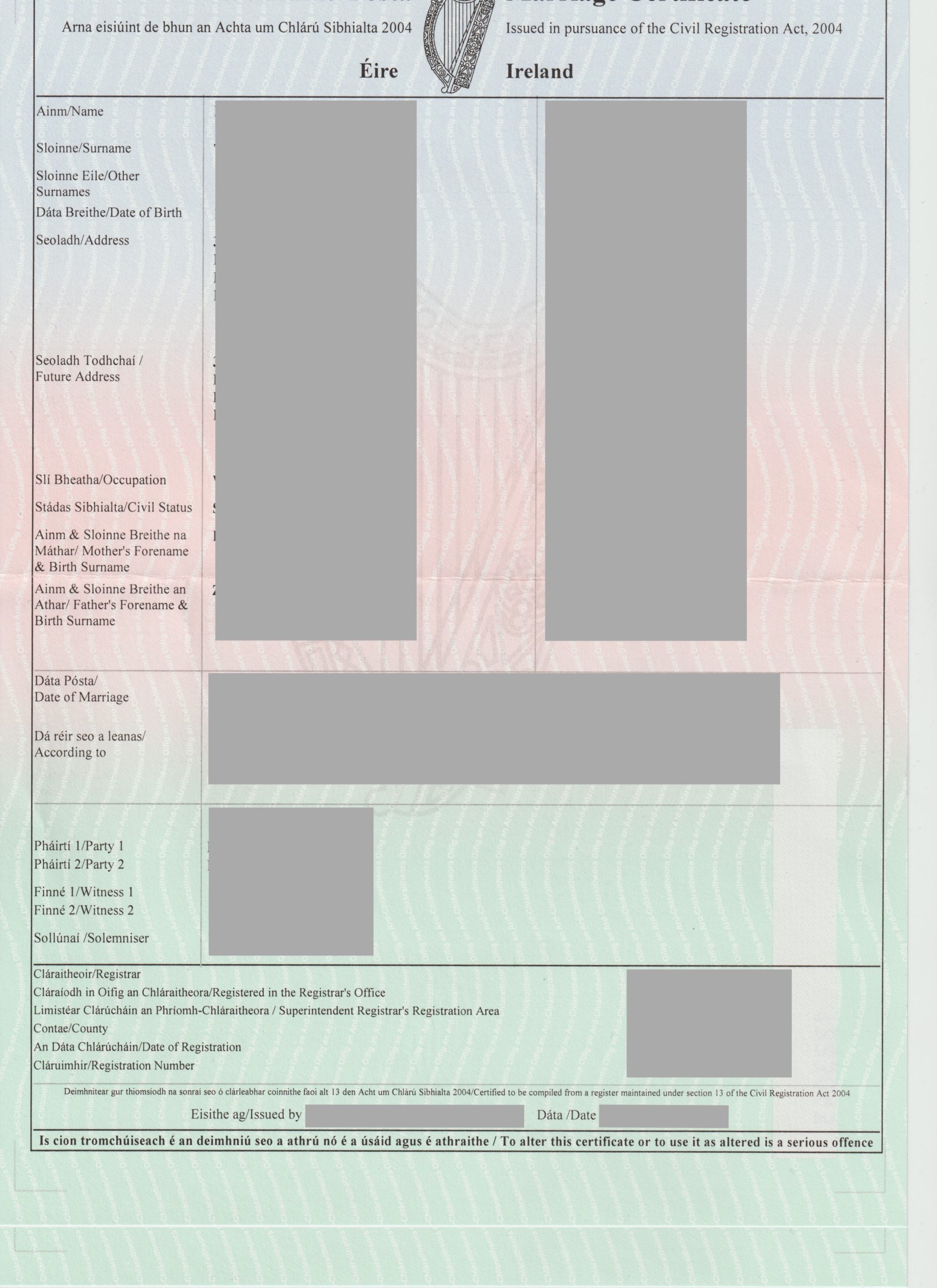 Certified Translation of Irish Marriage Certificate to Croatian